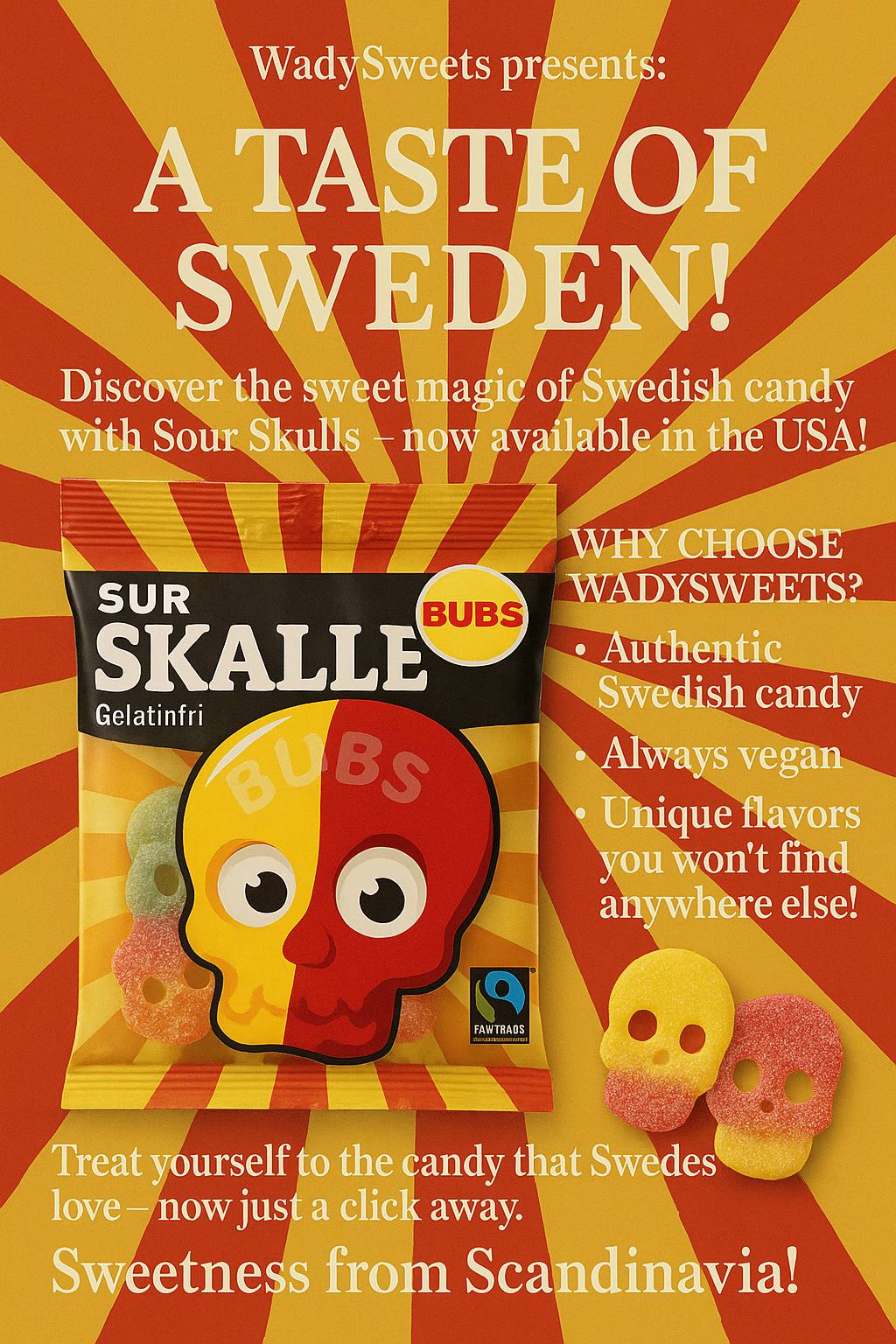 - VARIETY PACK: Set of 5 BUBS candy bags featuring different flavors - Sour Skull, Raspberry/Licorice, Strawberry Vanilla, Raspberry Blueberry, and Banana Toffee